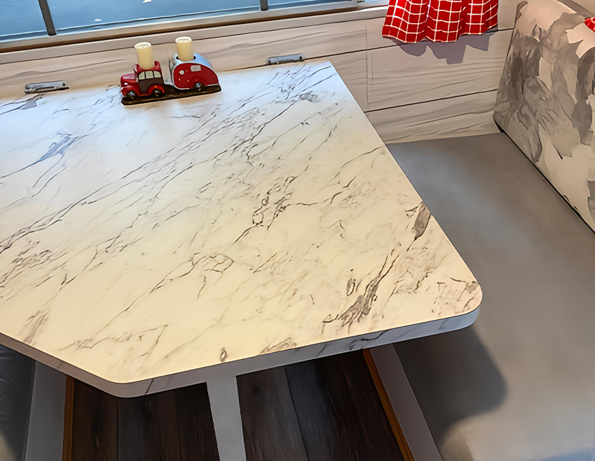Whether you’re replacing a worn-out dinette top or designing a full remodel, solid surface tables provide the perfect blend of strength, appearance, and easy maintenance — giving your RV a clean, modern feel without adding unnecessary weight.