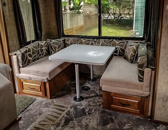 Laminate Dinettes are a smart choice for RV owners because they are lightweight and easy to install. Their low weight helps keep your RV balanced and efficient during travel. Even though they’re light, they remain durable enough to handle daily dining and regular use. These dinettes are also very affordable, making them a great option for upgrading your space without overspending. Laminate surfaces come in many colors and patterns, allowing you to match your RV’s interior style. They are simple to clean and maintain, even during long trips. The material resists stains and everyday wear, helping the dinette stay looking fresh. Overall, Laminate Dinettes offer a practical, budget-friendly solution for comfortable everyday RV dining.