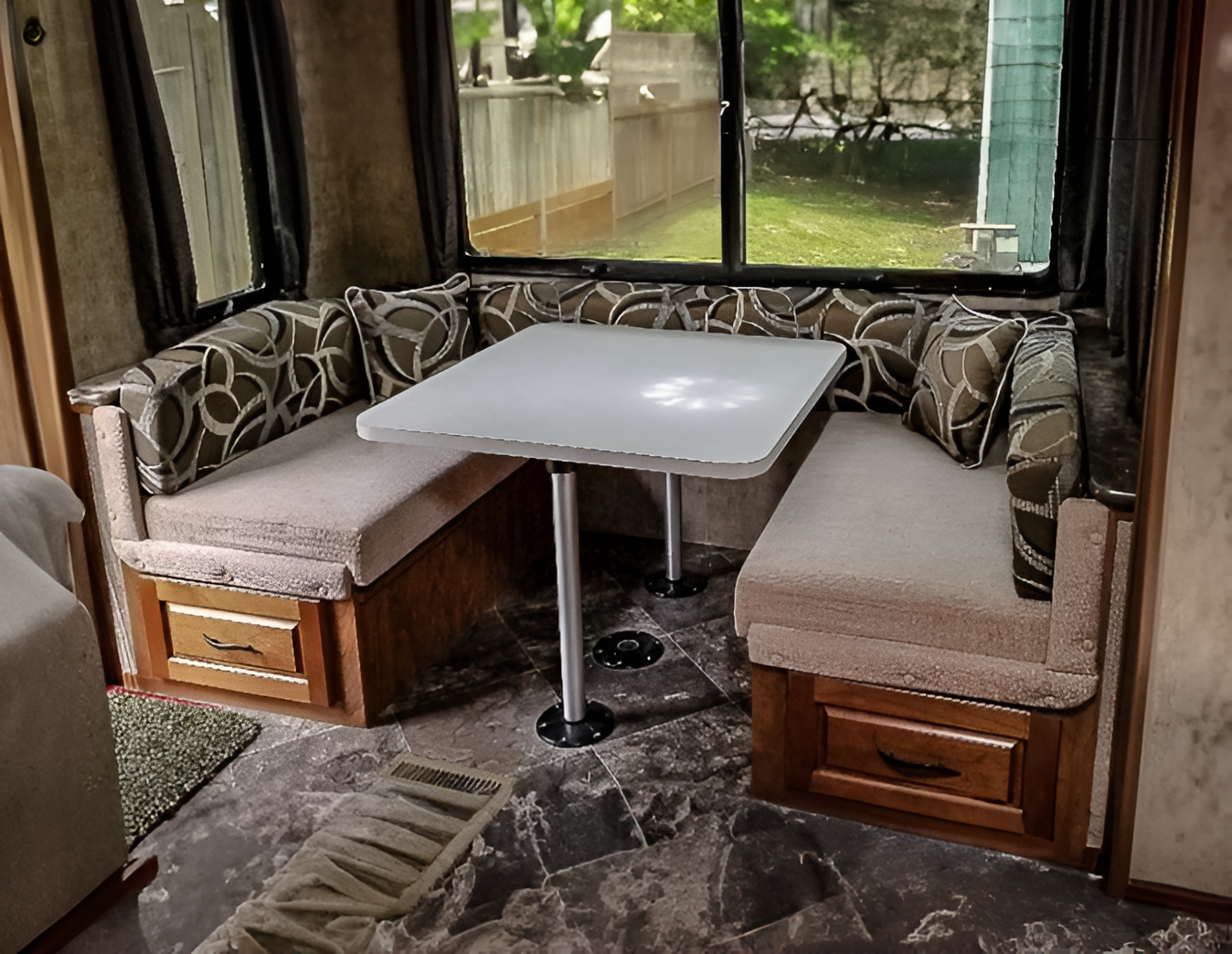 Laminate Dinettes are a smart choice for RV owners because they are lightweight and easy to install. Their low weight helps keep your RV balanced and efficient during travel. Even though they’re light, they remain durable enough to handle daily dining and regular use. These dinettes are also very affordable, making them a great option for upgrading your space without overspending. Laminate surfaces come in many colors and patterns, allowing you to match your RV’s interior style. They are simple to clean and maintain, even during long trips. The material resists stains and everyday wear, helping the dinette stay looking fresh. Overall, Laminate Dinettes offer a practical, budget-friendly solution for comfortable everyday RV dining.